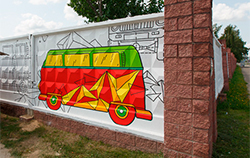 На ул. Аэродромной арт-сообщество UrbanPunks разукрасило забор общей площадью до 180 кв. метров рисунками на транспортную тематику. Теперь, на некогда унылом, непримечательном заборе разместились самолет, велосипед, автобус, вертолет, воздушный шар и другие транспортные средства. В общей сложность картина состоит более чем из 12 миниатюр со своими сюжетами.