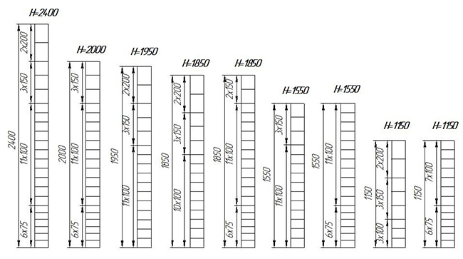 Ширина ячеек (расстояние между двумя смежными вертикальными прутками) варьируется от 50 мм и более.