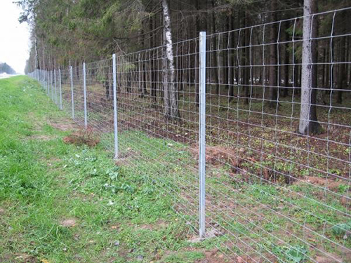 Особенность конструкции состоит в том, что свита сетка шарнирным узлом, и это позволило сделать на одном погонном метре разную высоту ячеек: в нижней части сетки в несколько раз меньше, чем в верхней, что препятствует проникновению и миграции мелких и крупных животных, а также несанкционированному доступу к огороженной территории человека.