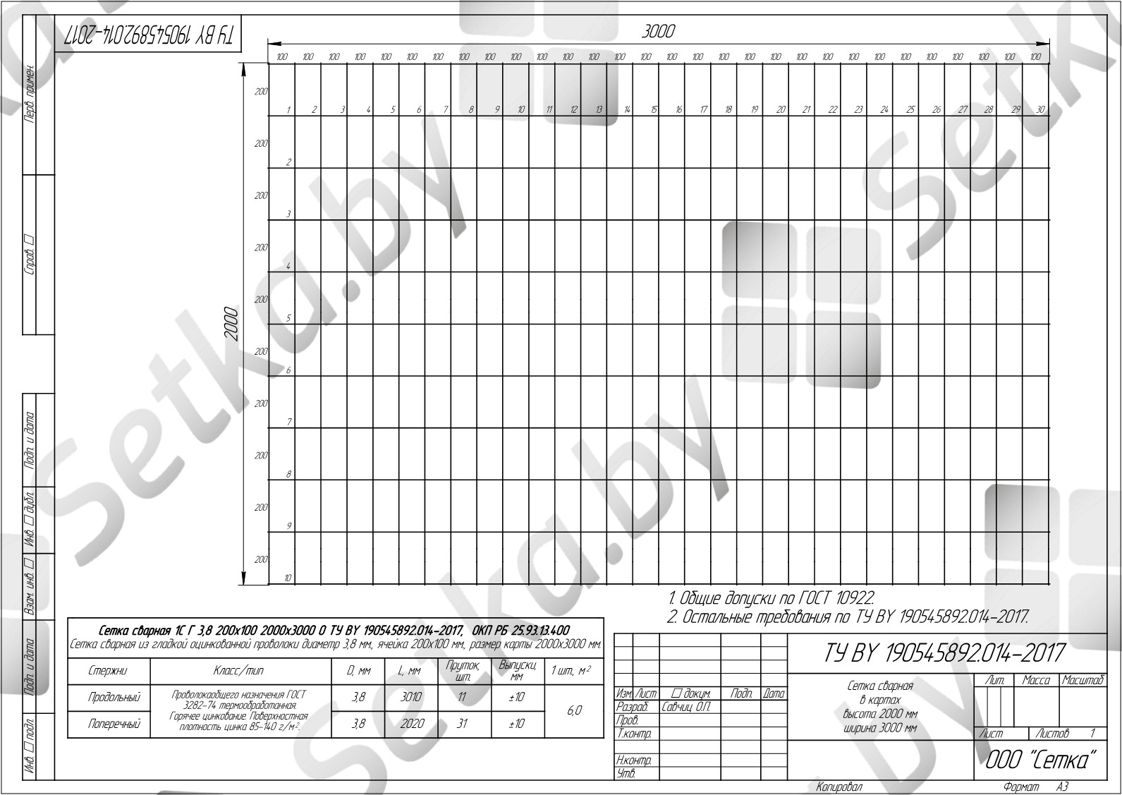 Производитель ООО "Сетка" Материал оцинкованная Проволока 3.8 ТУ BY 190545892.014-2017 Ячейка, мм 100x200 Размер, мм 2м х3м.