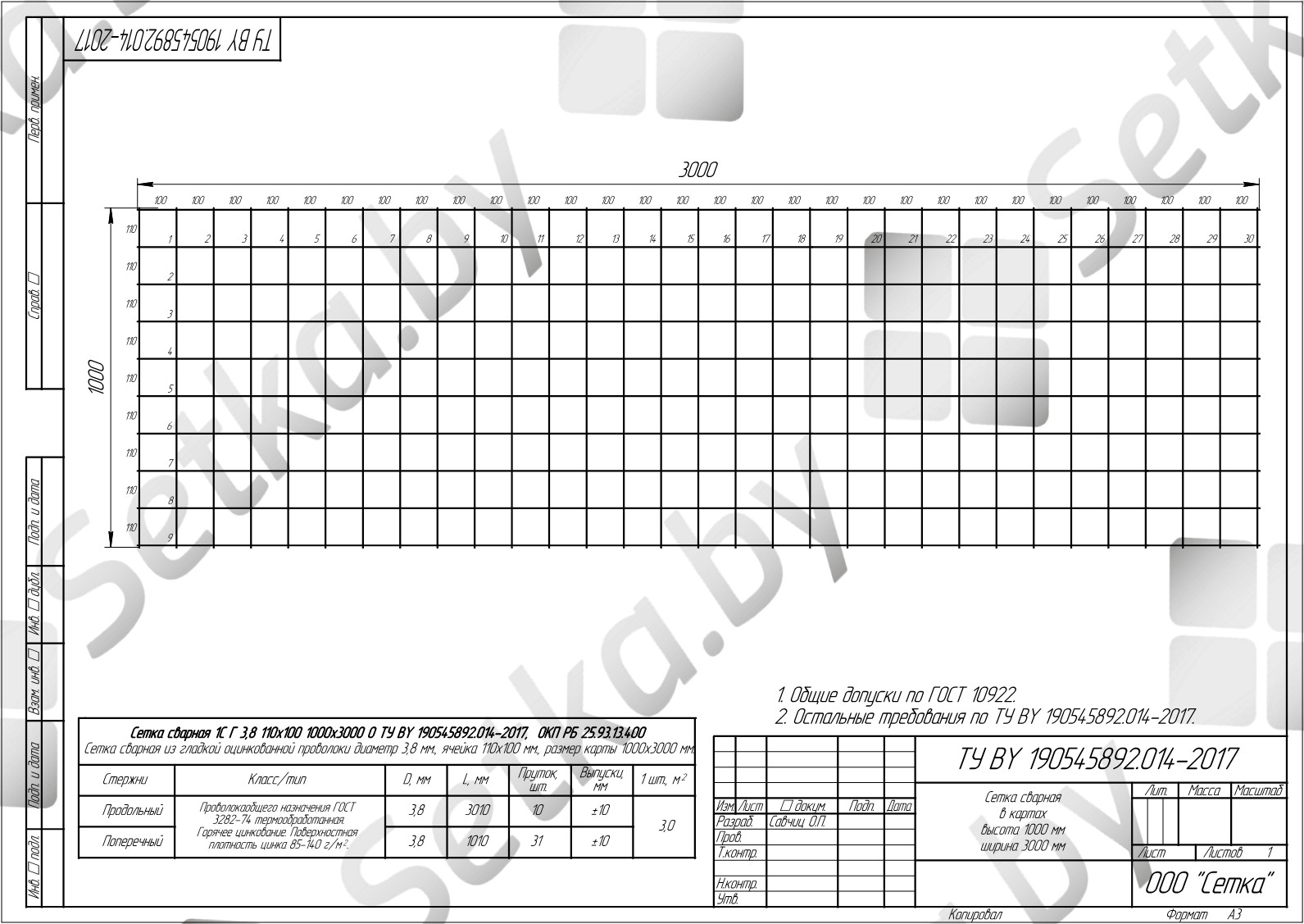 Производитель ООО "Сетка" Материал оцинкованная Проволока 3.8 ТУ BY 190545892.014-2017 Ячейка, мм 110х100 Размер, мм 1,05 х 2 м.,1,05 х3 м.