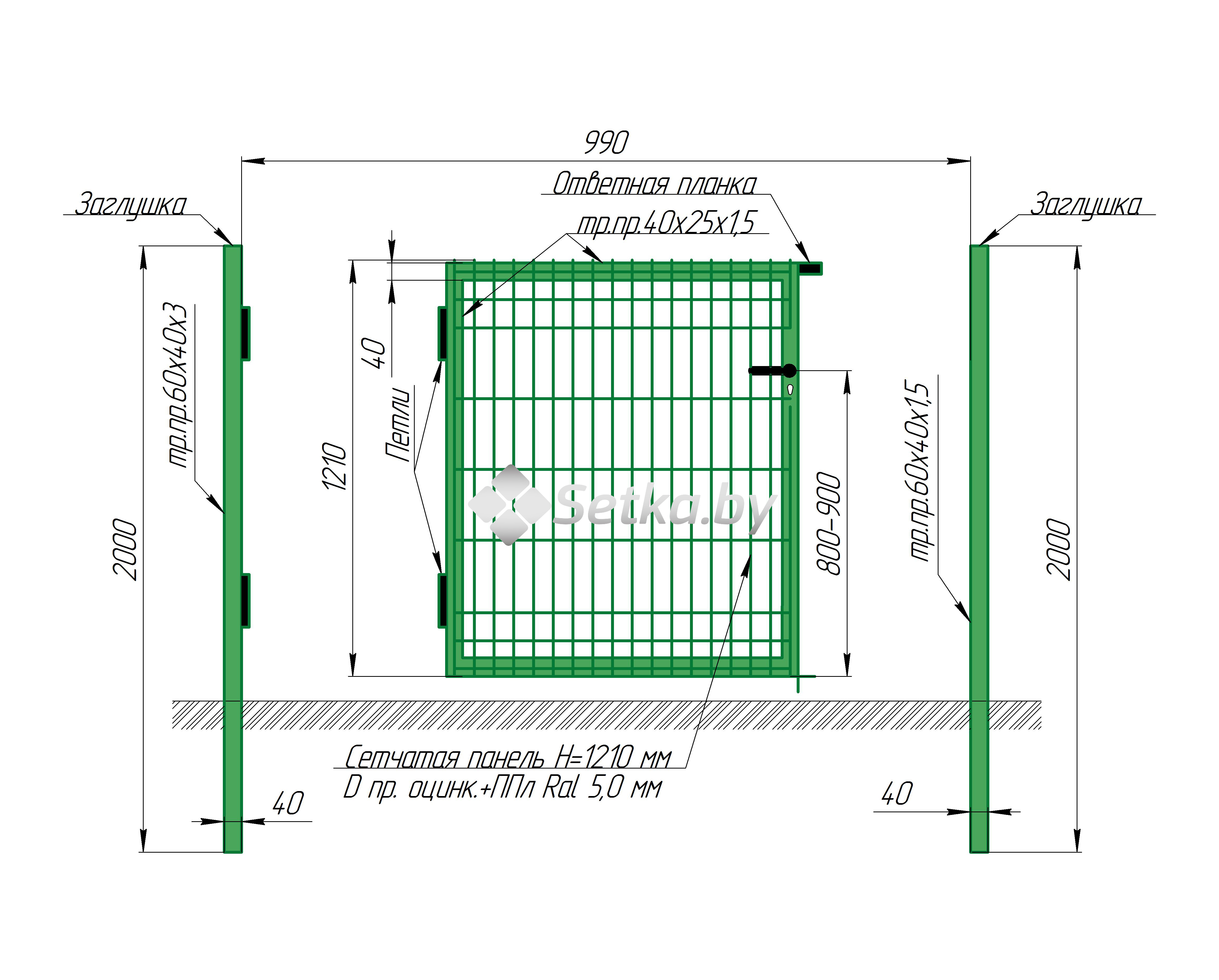 Производитель ООО "СЕТКА" Диаметр проволоки, мм 5мм. Материал из оцинкованной проволоки с полимерным покрытием Покрытие оцинкованная с полимером Проволока оцинкованная с полимерным покрытием, 5 мм любого цвета ТУ BY 190545892.005-2009 В комплекте толбы (врезной замок, ручка, цилиндрический механизм, ключи) Размер, м 1,21 х0,99м