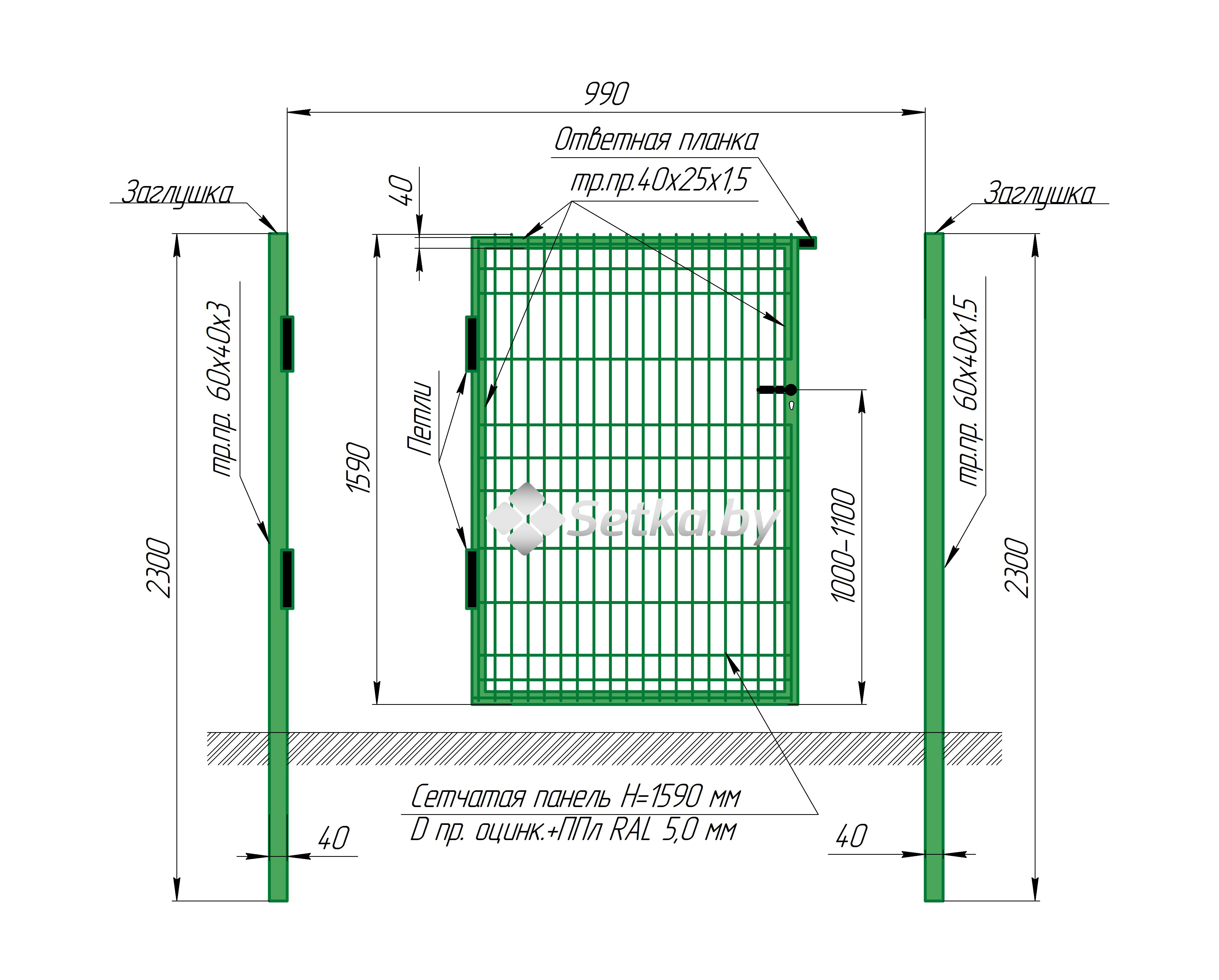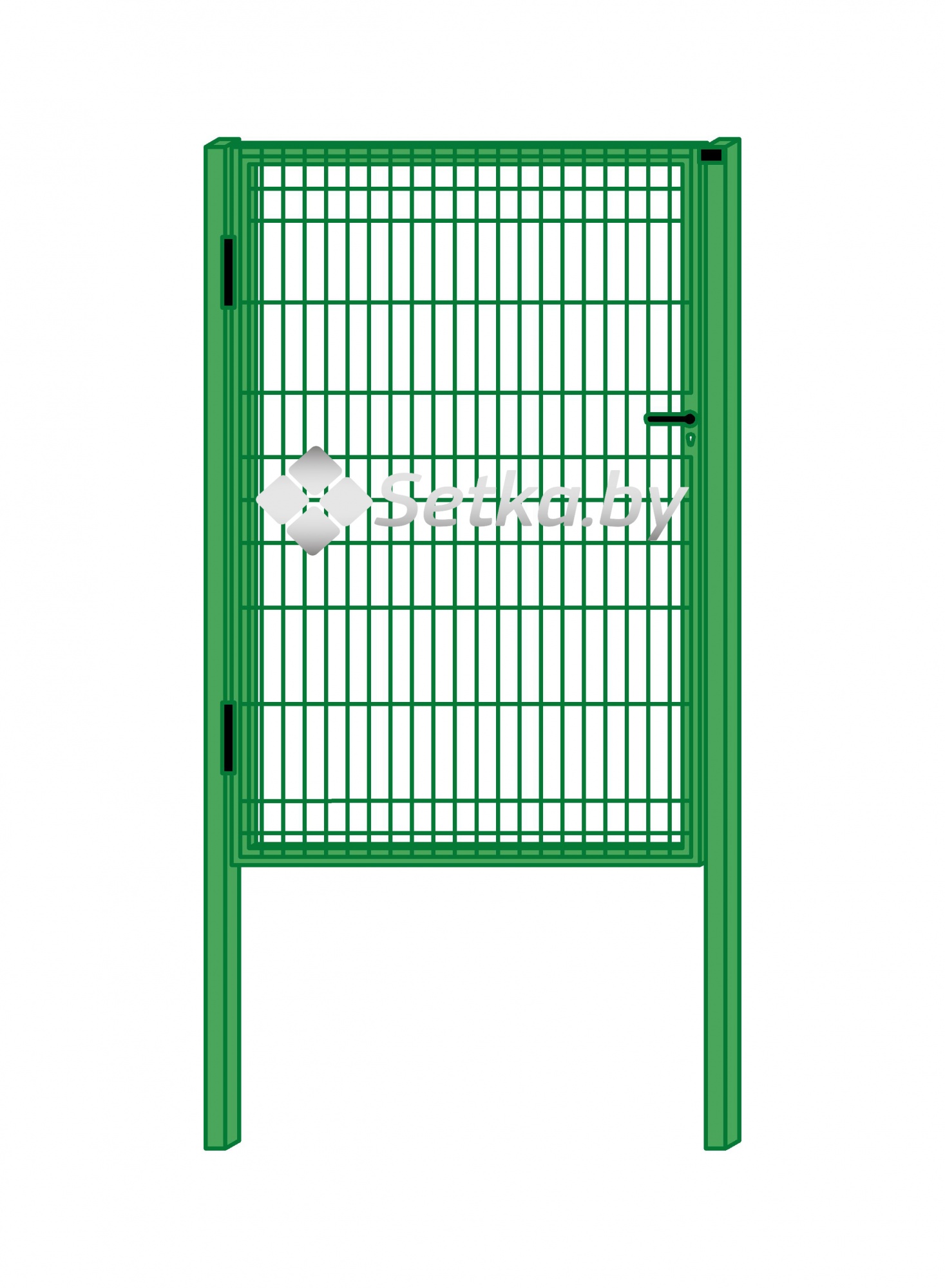 Стандартные размеры калитки: 1,60×0,99 м. Параметры столба: 60×40×высота 2300 мм. Изготовим также калитки любых других размеров по Вашему заказу. Цена калитки указана в комплекте со столбами (врезной замок, ручка, цилиндрический механизм, ключи). Калитка изготавливается из сетчатой 3D-панели, диаметр проволоки 3,8 мм .Для изготовления каркаса используются трубы с прямоугольным сечением 40х40х1,5. Для столбов с петлями – трубы 60х40х2/3. Высота изделия – 1,60 м, ширина – 0,99 м. Готовое изделие в собранном виде покрывается полимером любого цвета по каталогу RAL. Такая калитка идеально подойдет для защиты проходов в хозяйственных ограждениях.