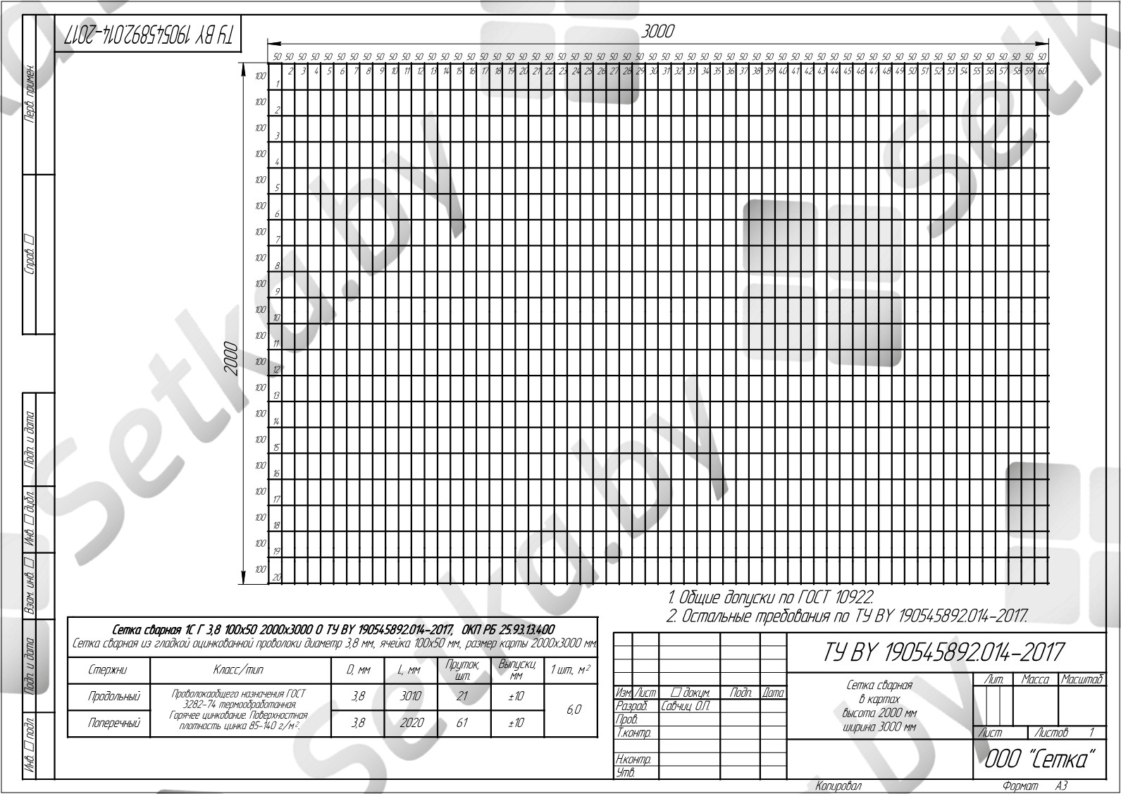 Производитель ООО"СЕТКА" Материал оцинкованная проволока Проволока оцинкованная 3,8 мм. ТУ BY 190545892.014-2017 Размер, м 2х2, 2х3м