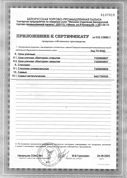 СЕРТИФИКАТ ПРОДУКЦИИ СОБСТВЕННОГО ПРОИЗВОДСТВА! 2020-2021.