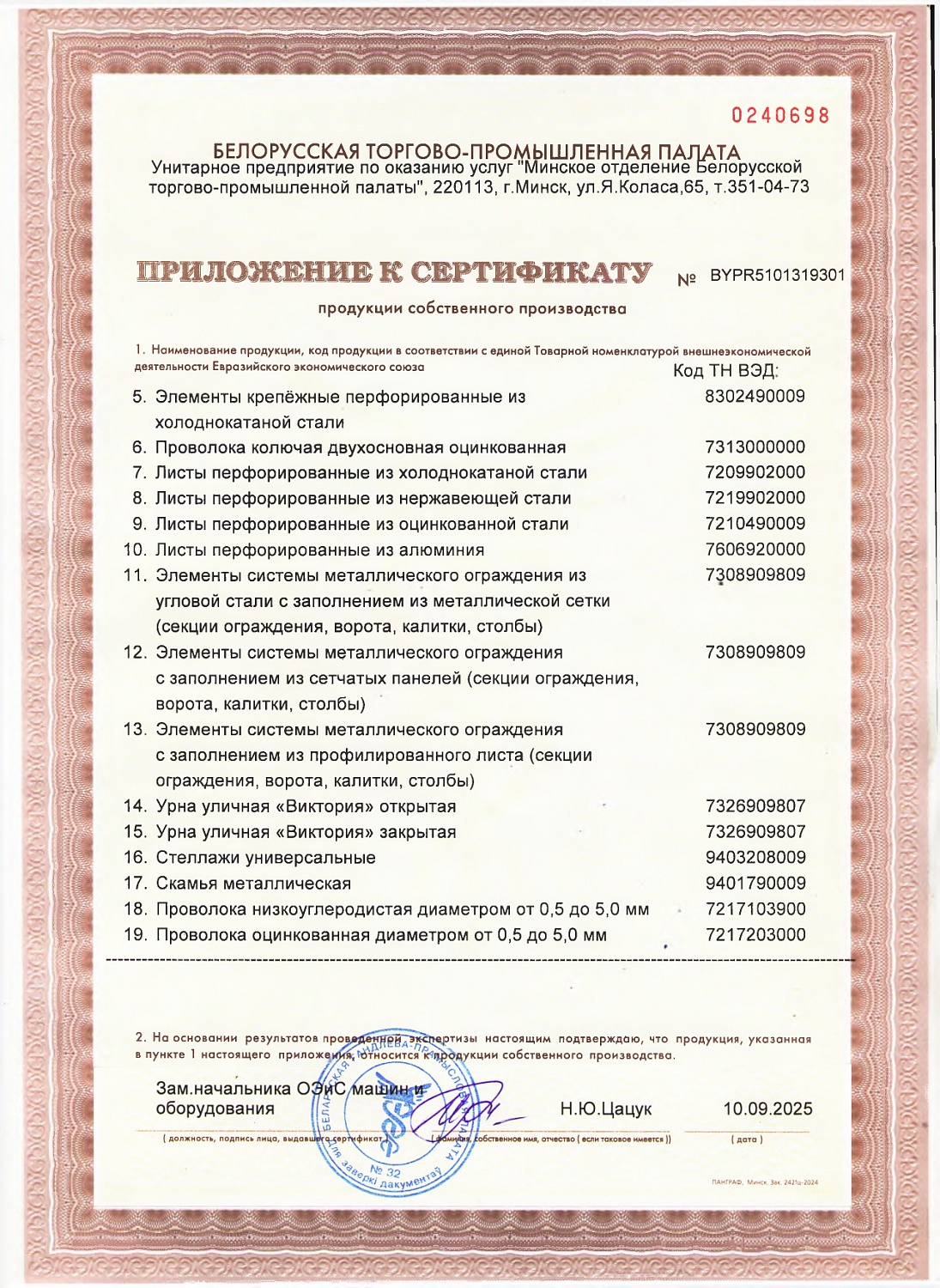 Производство металлоизделий.
