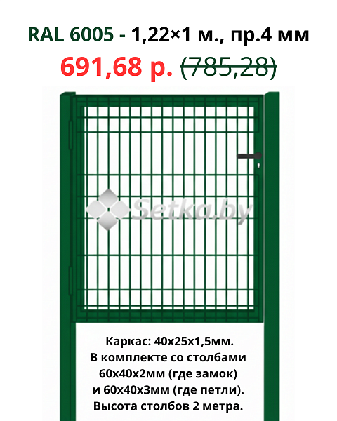 Высота: 1220мм.  Ширина: 1000мм.  Каркас:40х25х1,5мм.  Диаметр проволоки: 4мм.